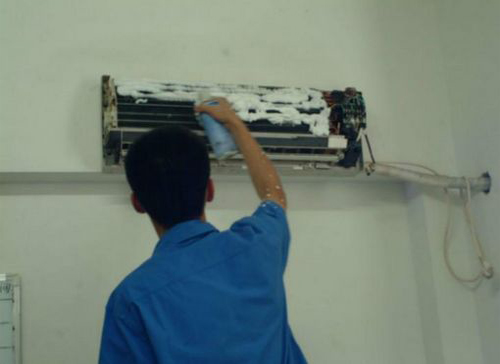 | 大名空调维修师傅给大名用户上门维修清洗空调。 |